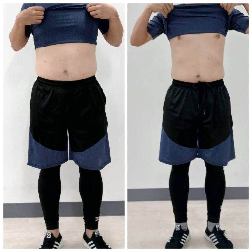 4ヶ月を週1回のペースでトレーニングを行い、毎日の食事指導を頑張って取り組むことで-7㎏減です(^^)